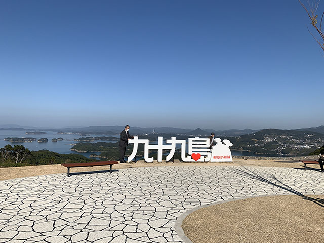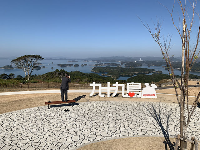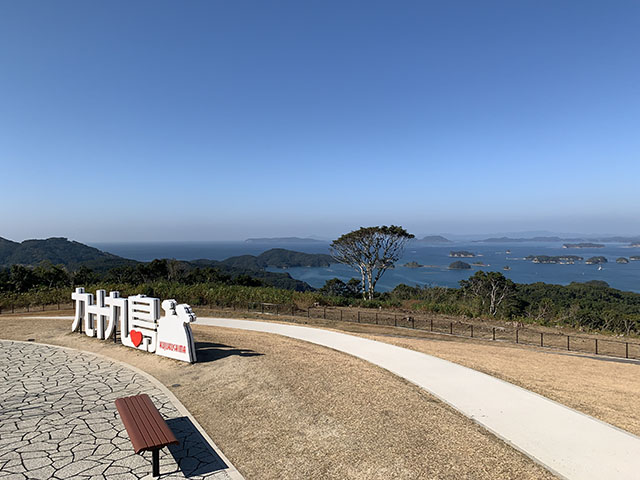 投稿日: 2021年11月21日2025年7月24日九十九島観光公園 2021.11.20 九十九島観光公園(長崎県佐世保市野崎町) お得意先の社長と年賀状用の写真撮影に行きました 「九十九島観光公園」は、約4.7ヘクタールの広大な芝生広場の丘「眺望の丘」からは、九十九島の大パノラマを見渡すことができ、市民の皆さんだけでなく、本市を訪れる観光客の皆さんにもこれまでにない景観を体感していただけます。供用開始日 令和3年3月28日